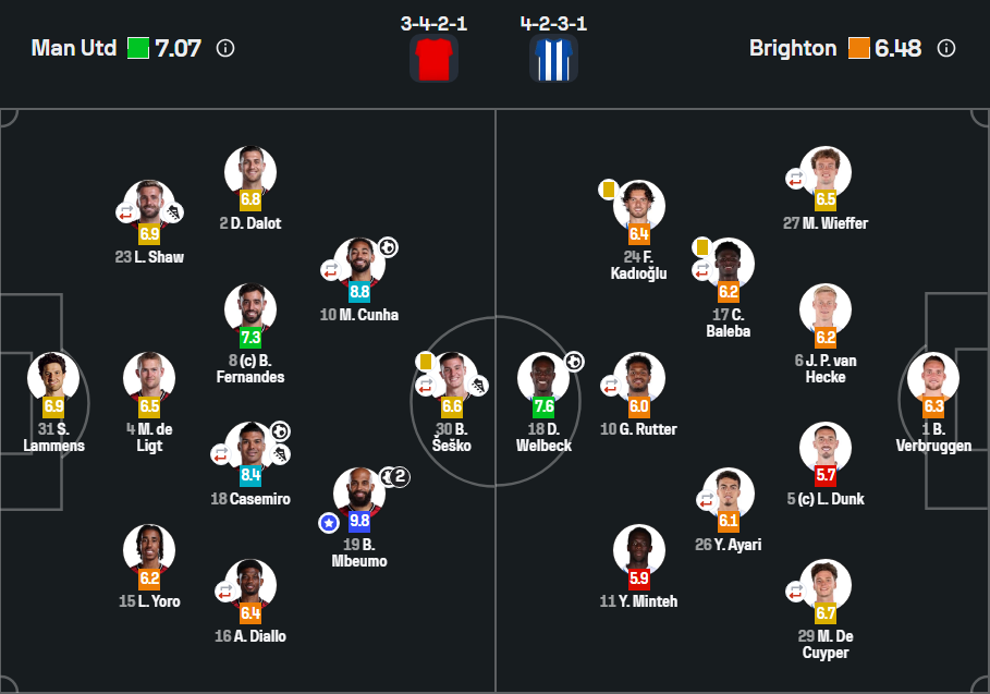 - Составы Манчестер Юнайтед и Брайтона