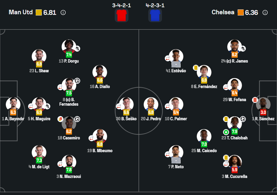 - Составы Манчестер Юнайтед и Челси